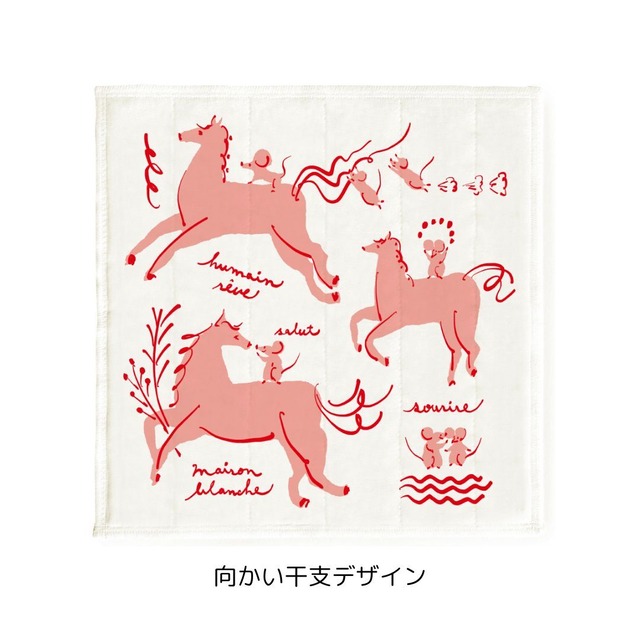 maison blanche メゾンブランシュ 干支ふきん 奈良かや生地ふきん 向かい干支午と子 レッド/817