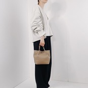 H.62 soixante-deux タック2wayトート ハンドバッグ ショルダーバッグ シルバー