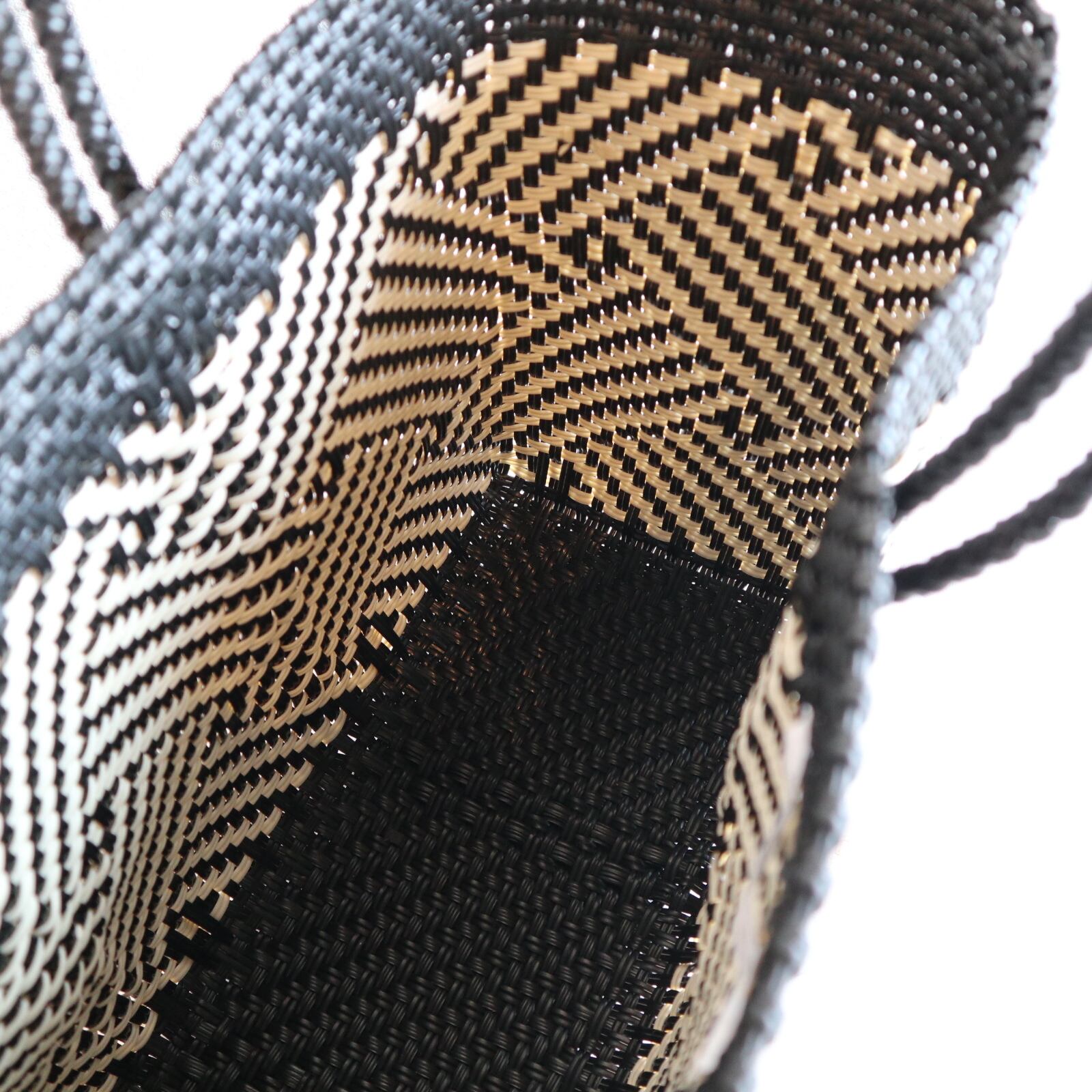 Moon Bird(ムーンバード)手編みのメルカドバッグ 横長(M)BLACK×CREAM