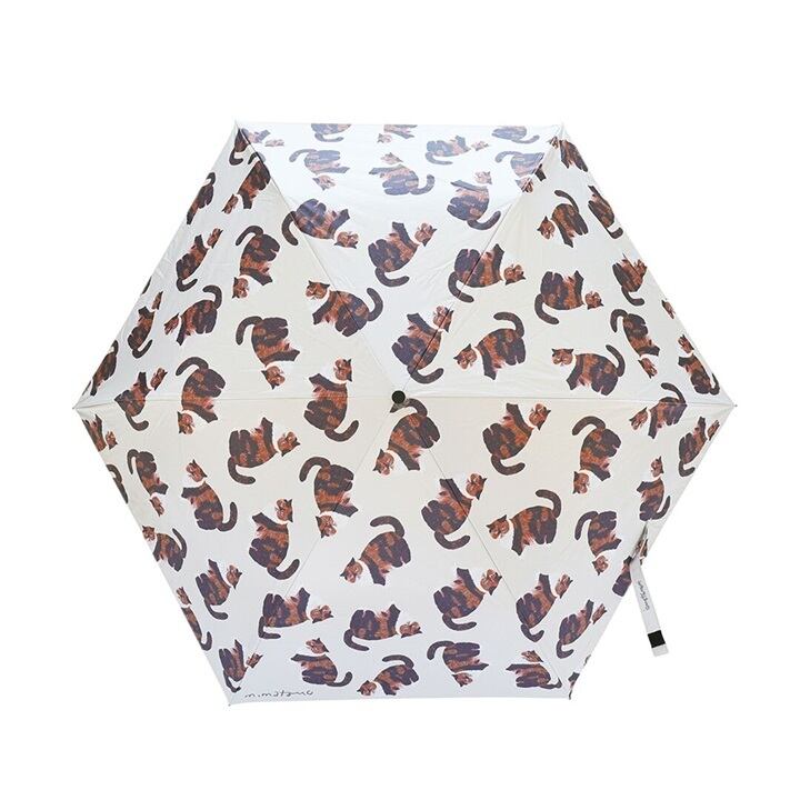 松尾ミユキさんの描く人気のネコたちが、晴雨兼用の折りたたみ傘にデザインされています。