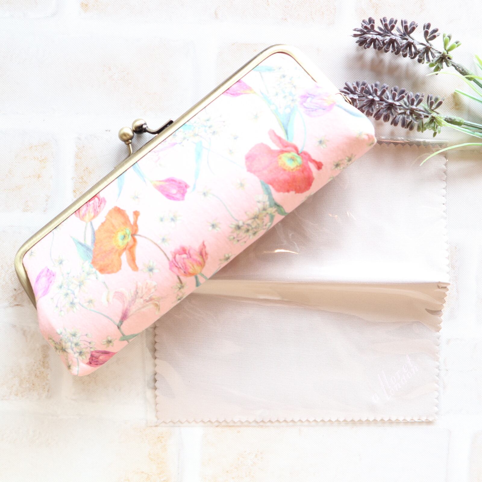 リバティプリントを使用したがま口タイプのメガネ&ペンケースです。