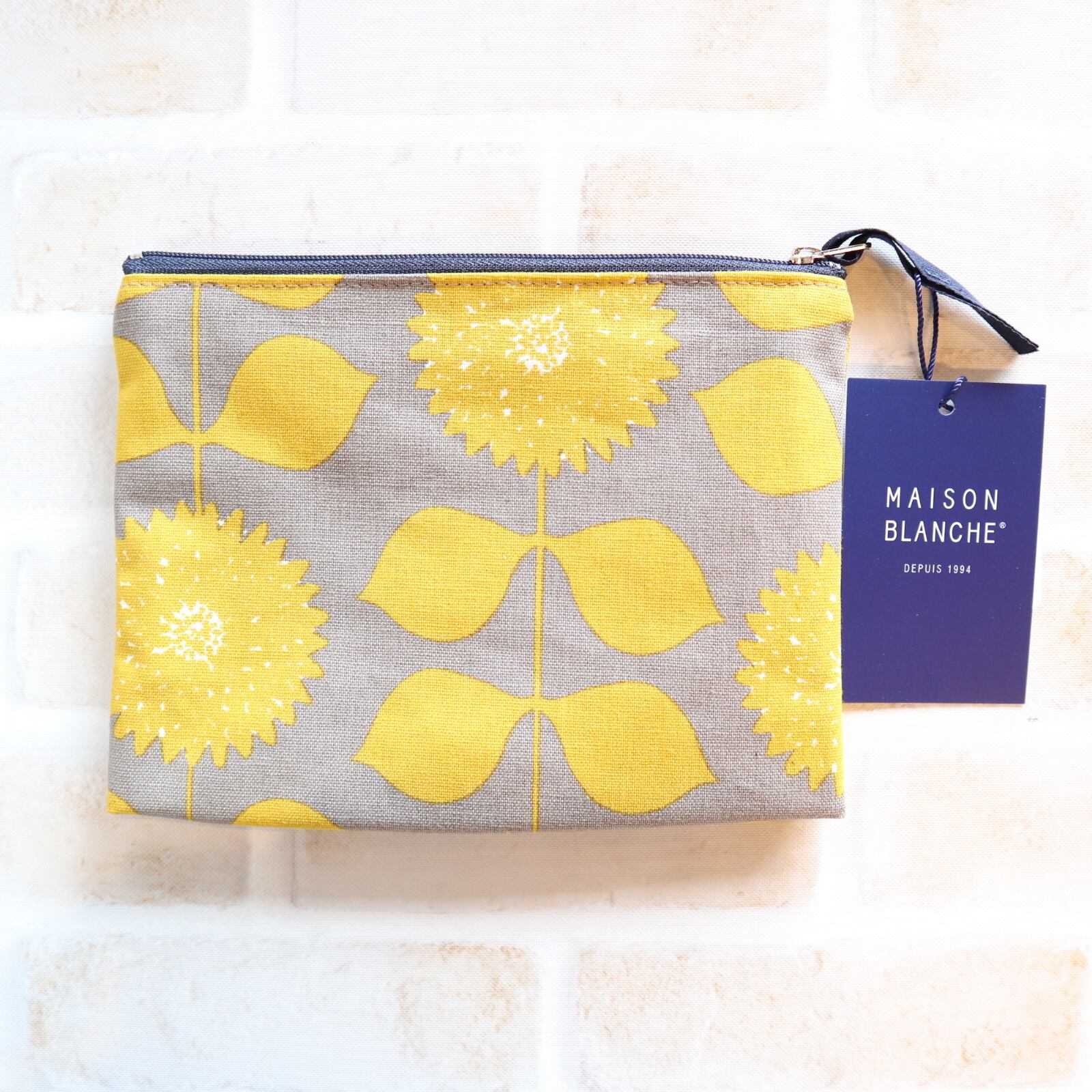 maison blanche メゾンブランシュ フラットポーチ. ドゥ ポーチ フルール グレー×イエロー
