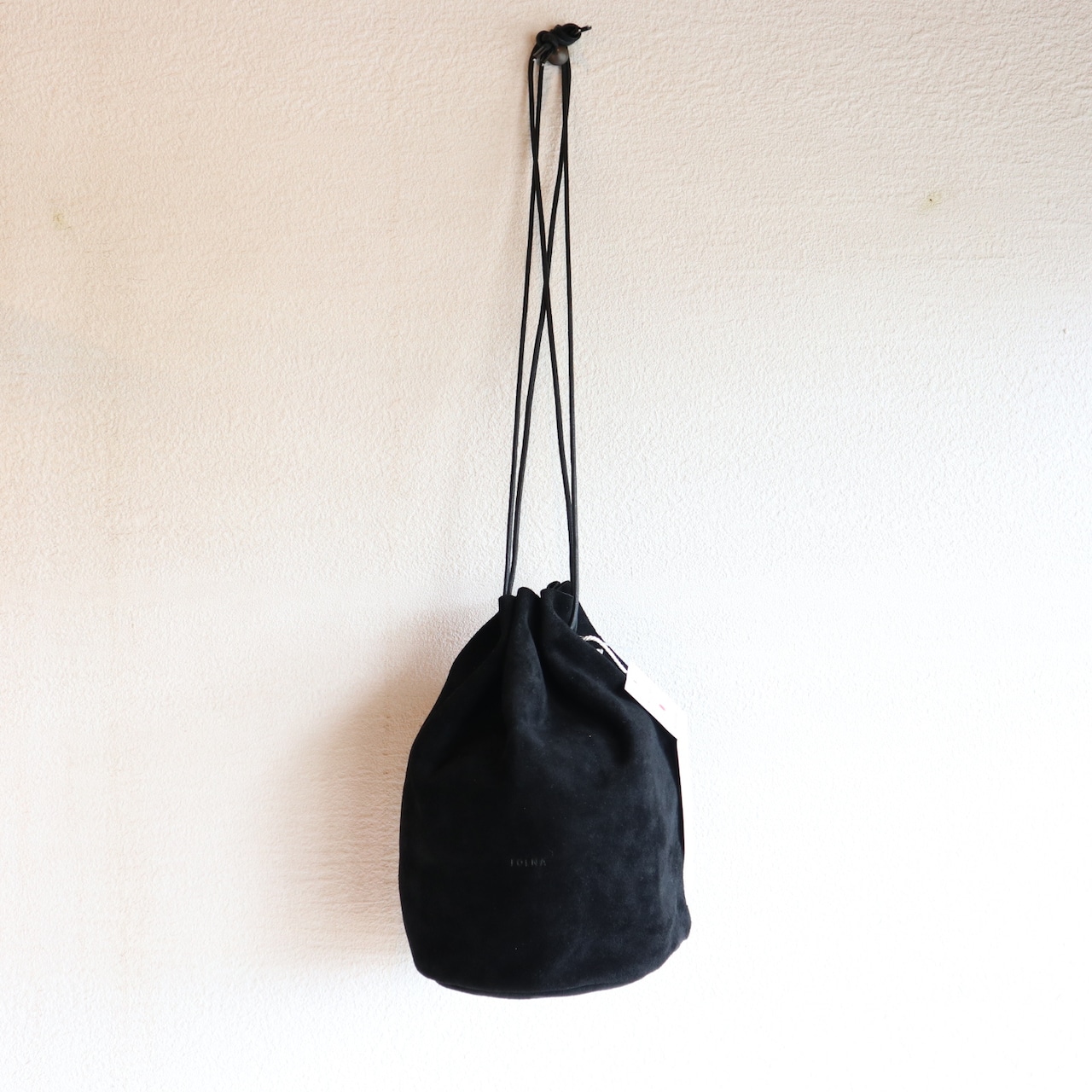 FOLNARD 本革 ベロア巾着ショルダー ブラック