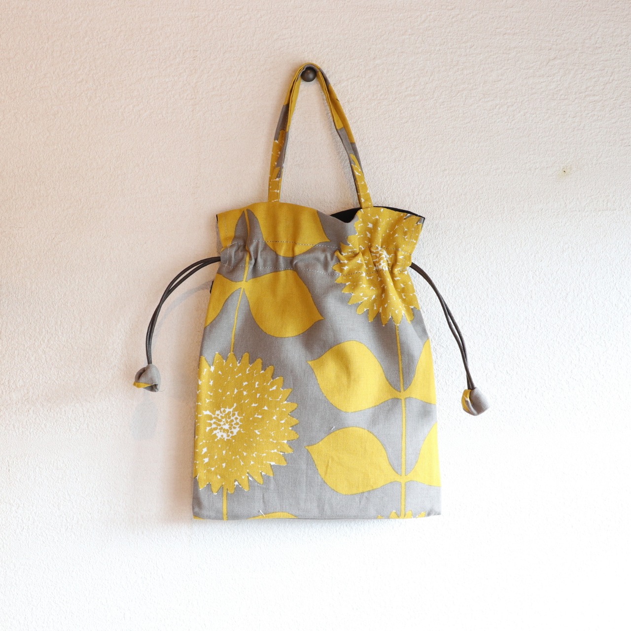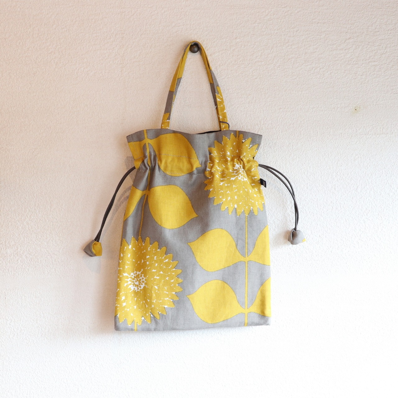 maison blanche メゾンブランシュ 巾着バッグ.ドゥ フルール グレー×イエロー