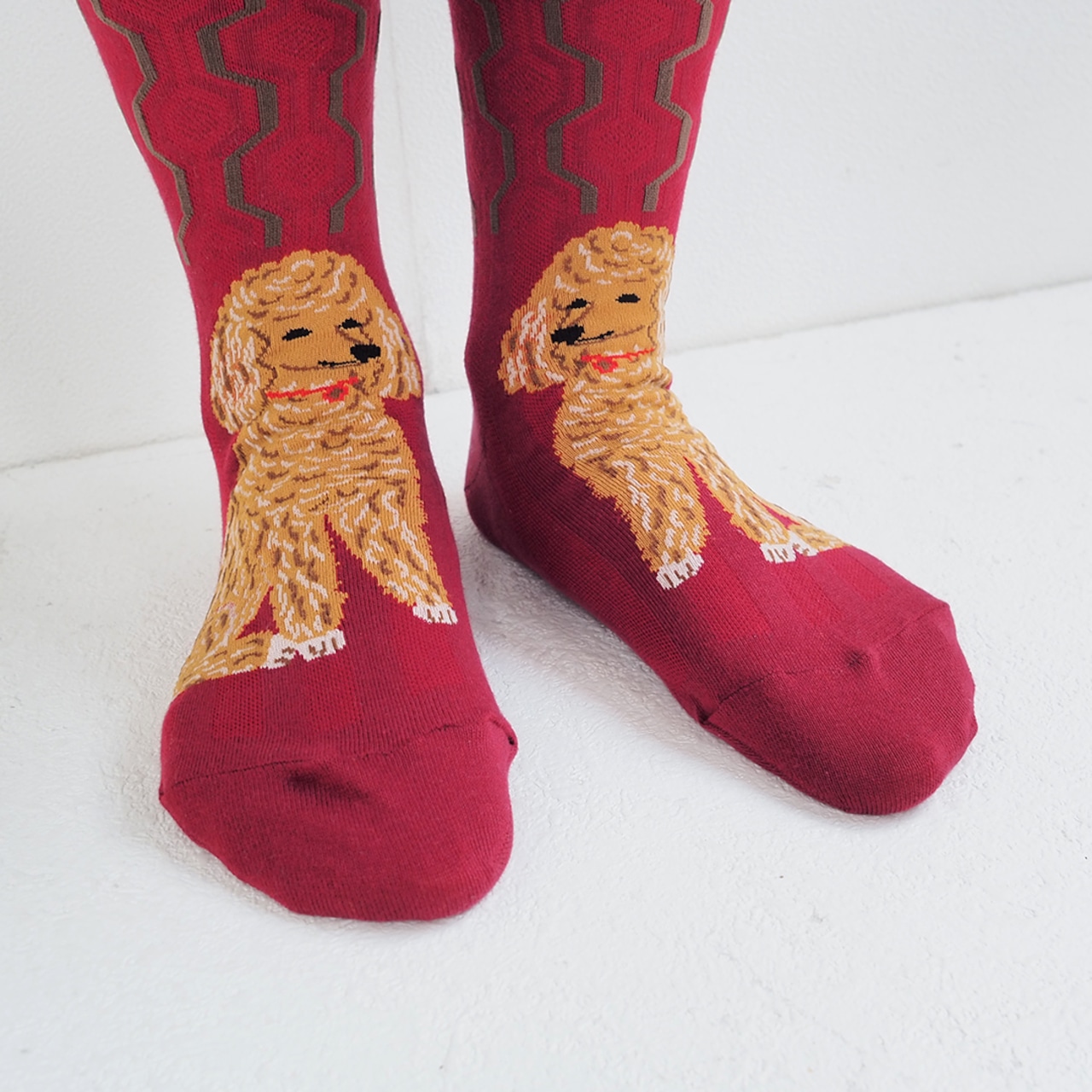 ande アンデ ハイゲージ ソックス 刺繍 靴下 日本製 クルー丈 ドッグ/レッド071