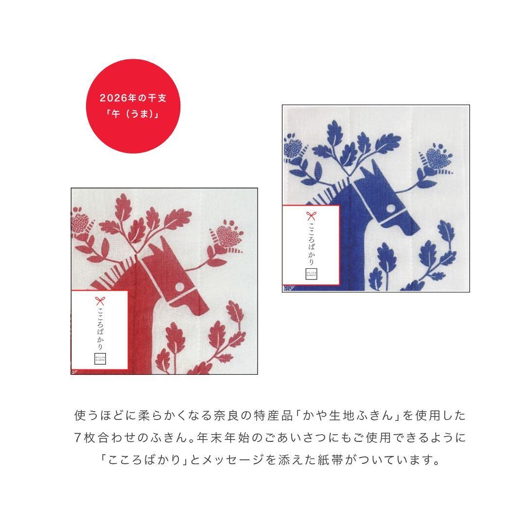 使うほどに柔らかくなる奈良の特産品「かや生地ふきん」を使用した、7枚合わせのふきん。