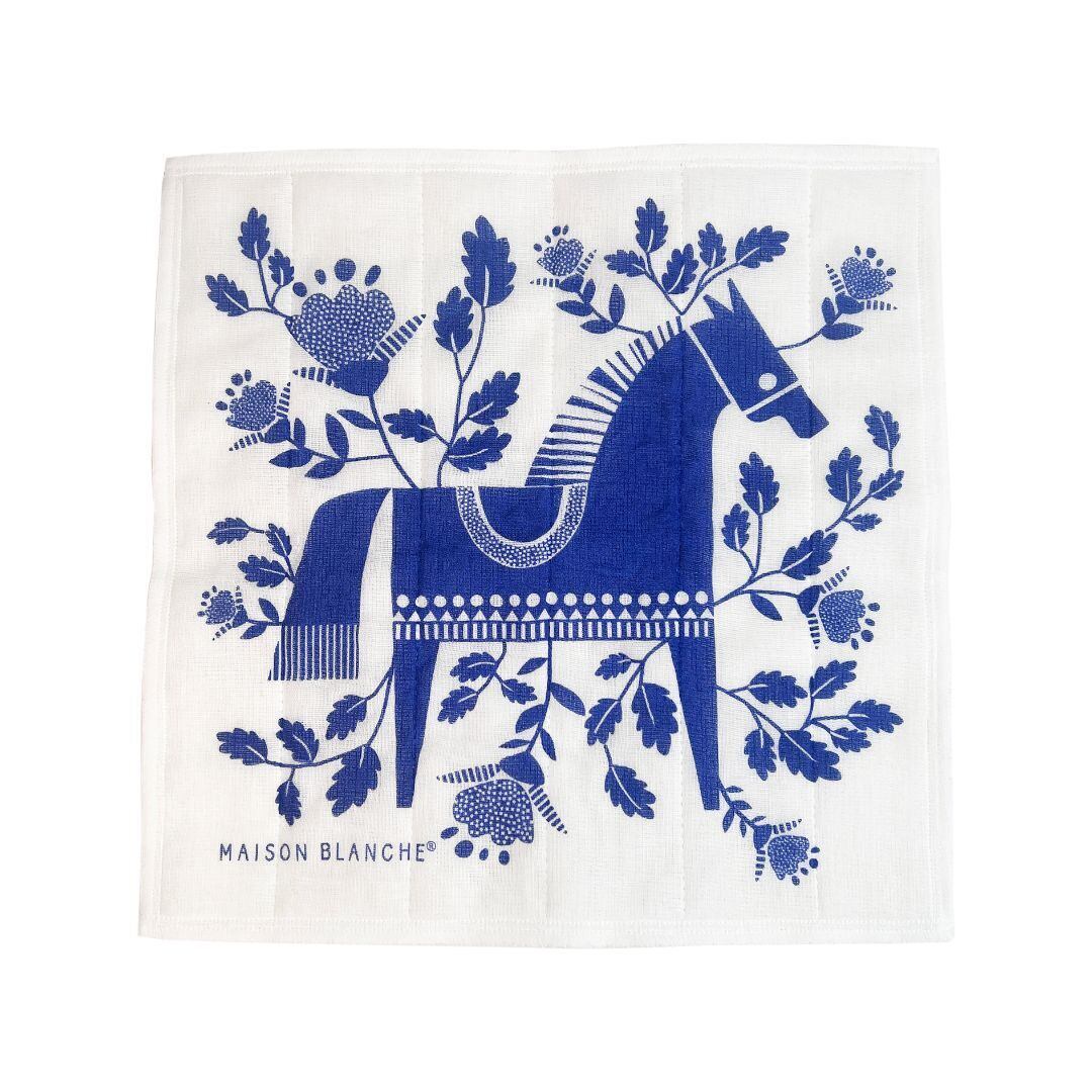 maison blanche メゾンブランシュ 干支ふきん 奈良かや生地ふきん 午と花 ブルー/820