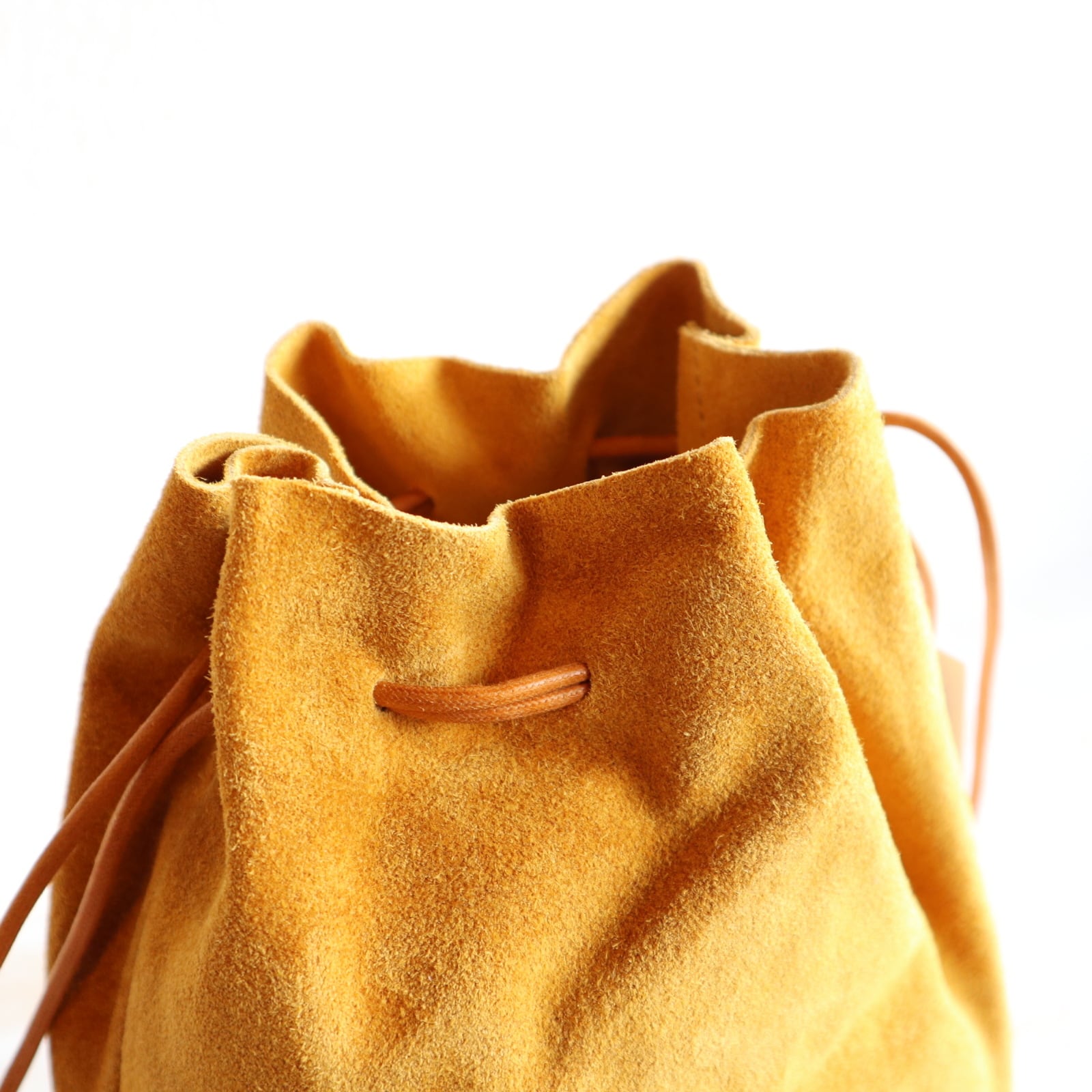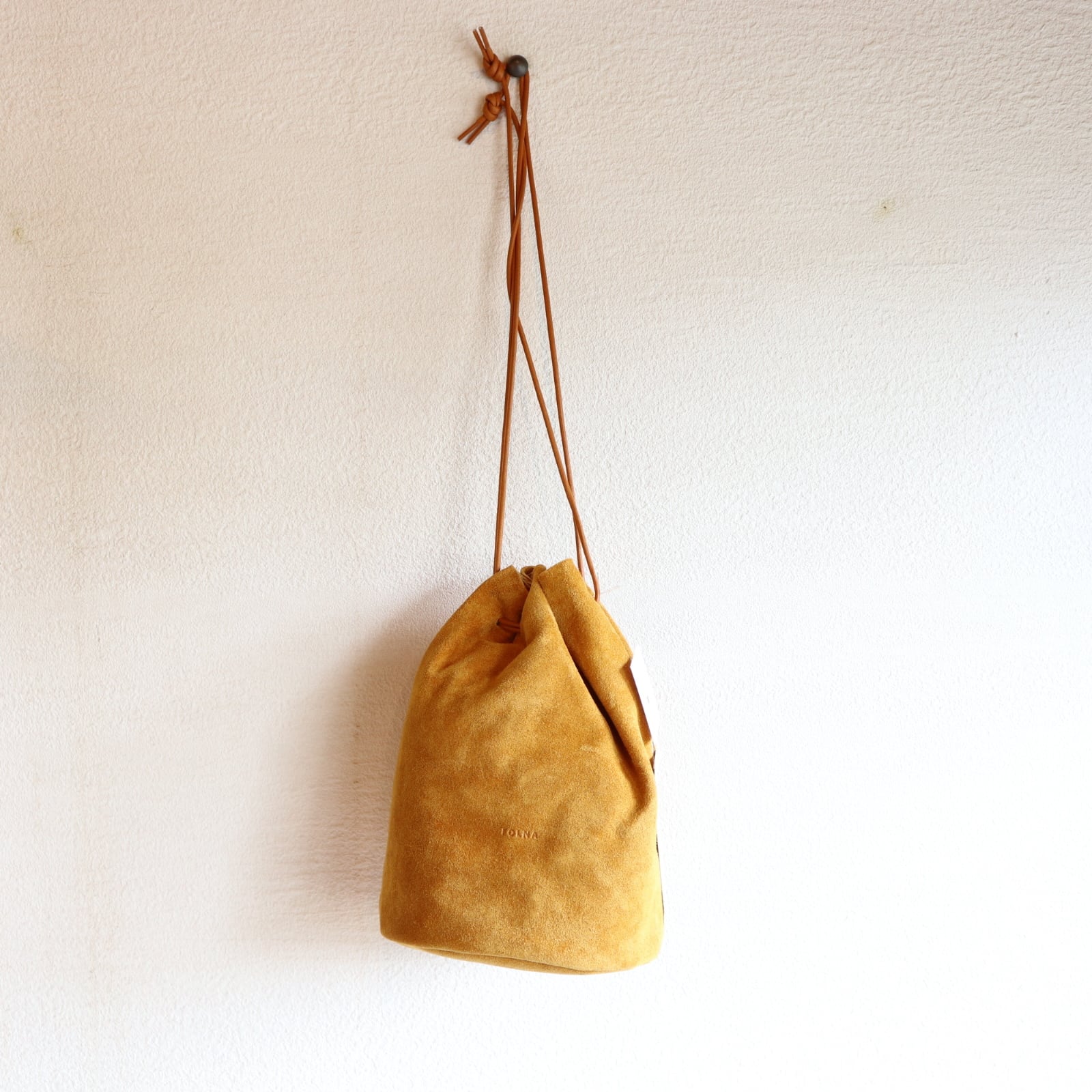 FOLNARD 本革 ベロア巾着ショルダー マスタード