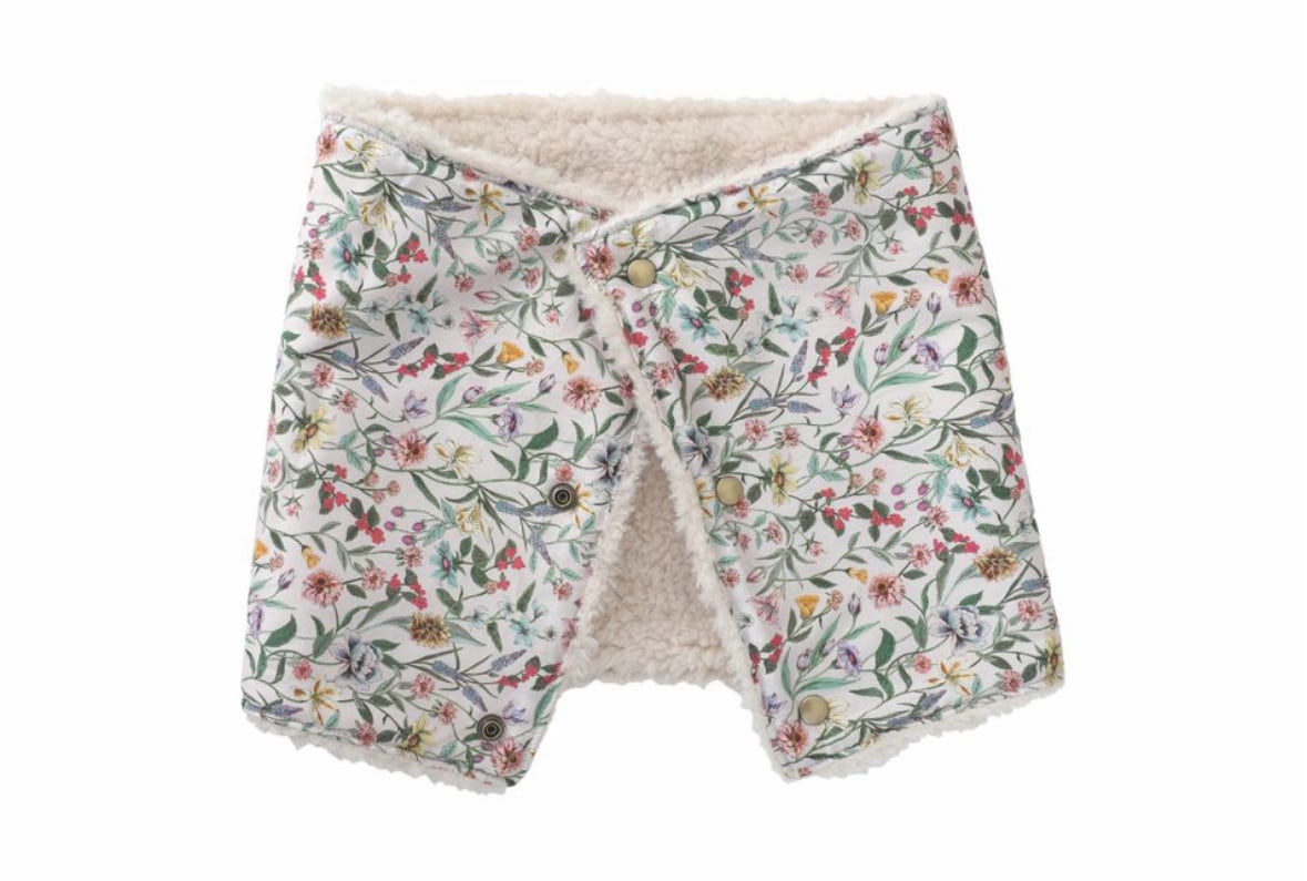 表面にリバティプリント生地、内側にボア生地を使ったボタンスヌードです。