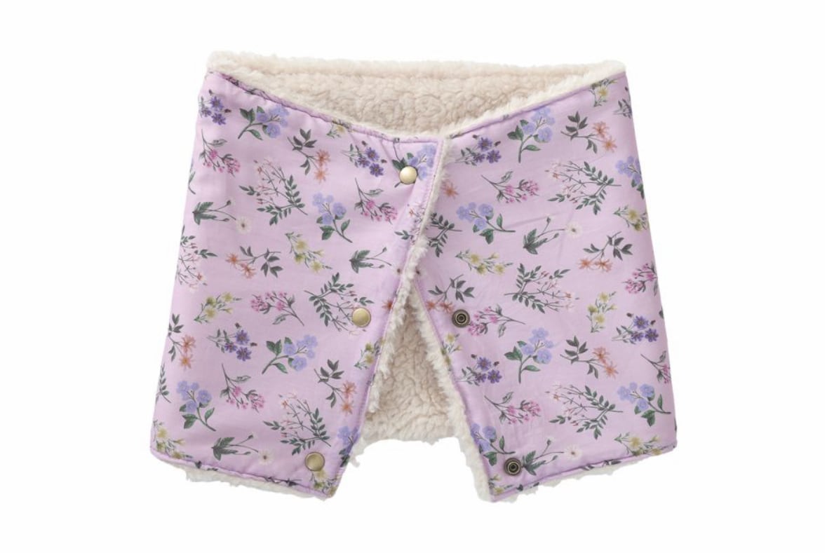 表面にリバティプリント生地、内側にボア生地を使ったボタンスヌードです。
