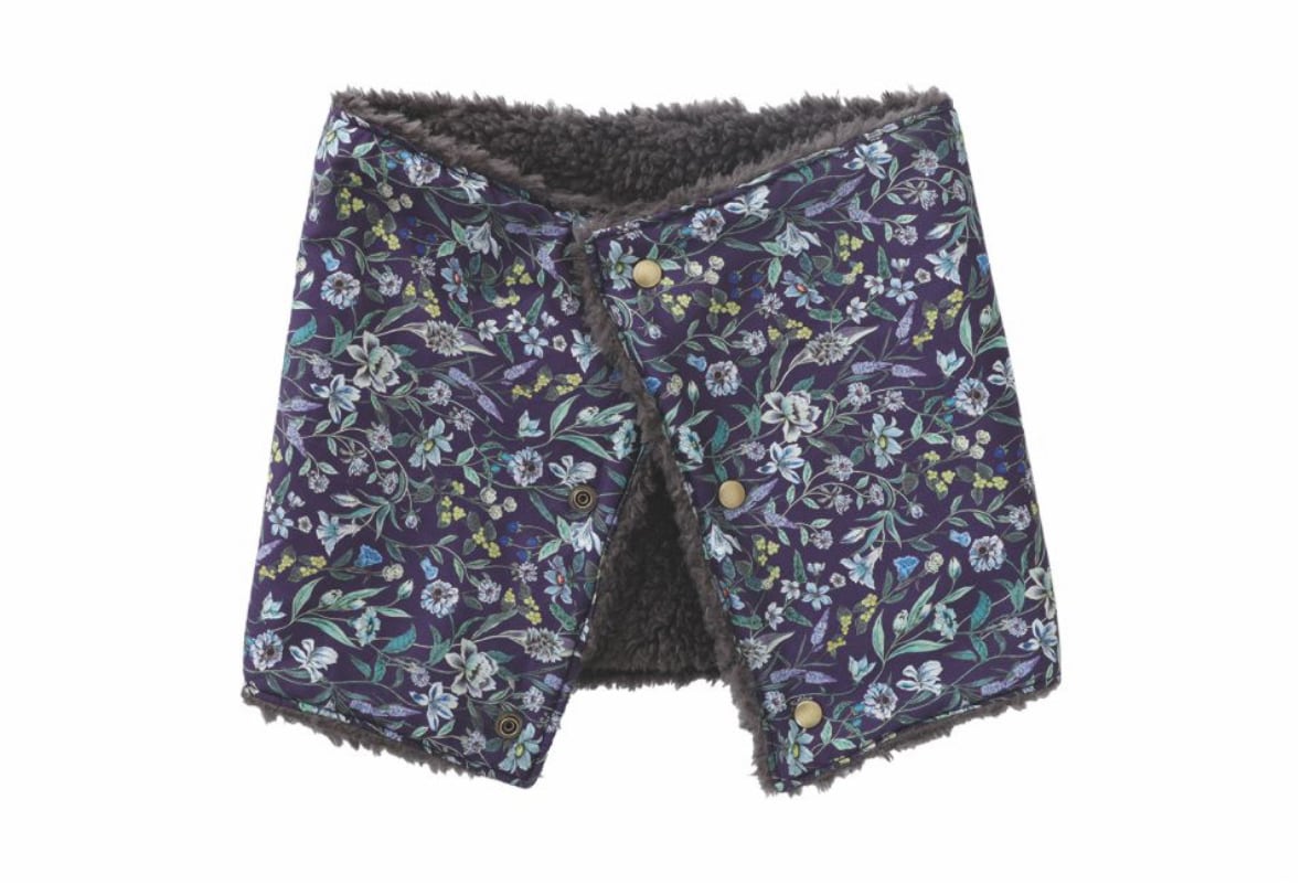 表面にリバティプリント生地、内側にボア生地を使ったボタンスヌードです。