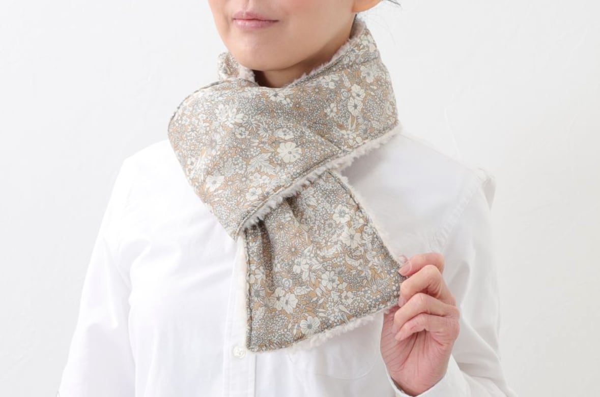 表面にリバティプリント生地、内側にボア生地を使ったネックウォーマーです。