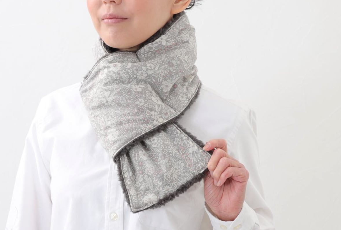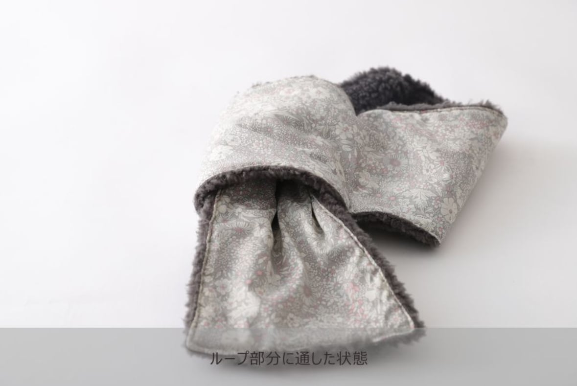 表面にリバティプリント生地、内側にボア生地を使ったネックウォーマーです。