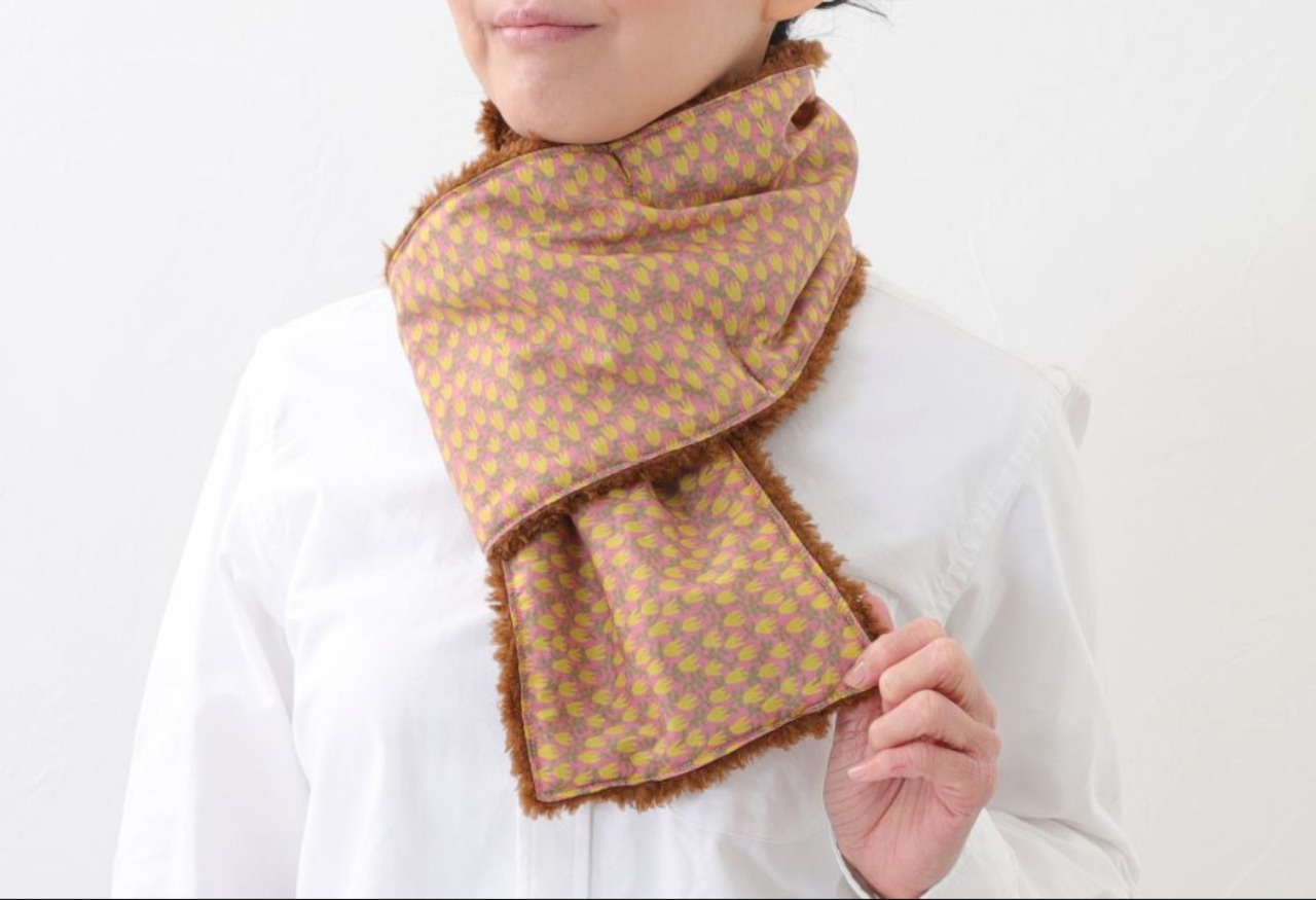 表面にリバティプリント生地、内側にボア生地を使ったネックウォーマーです。