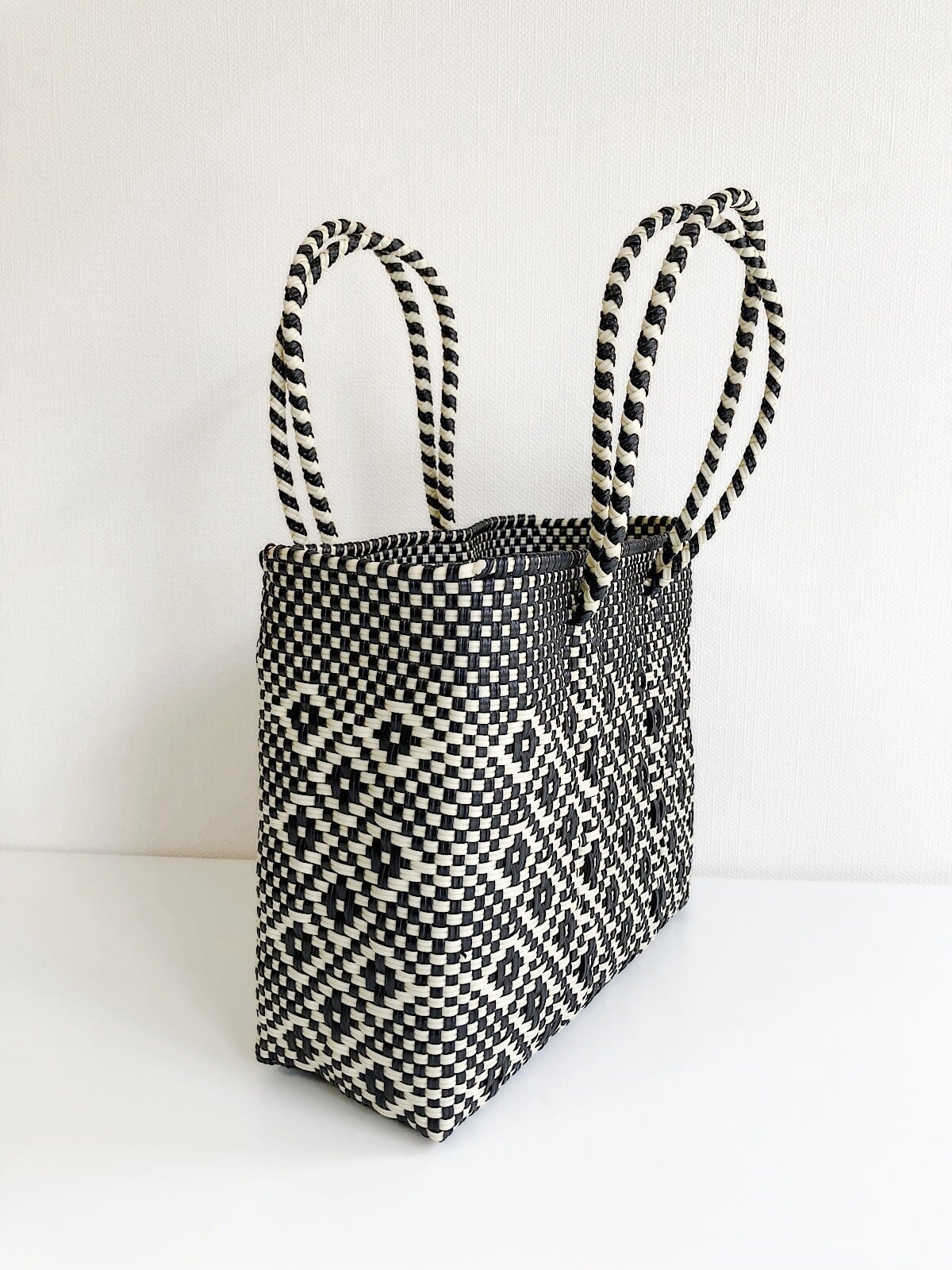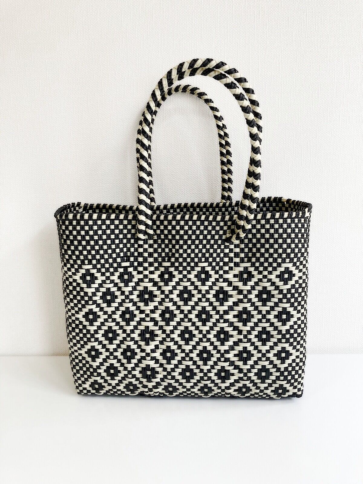 Moon Bird(ムーンバード) メキシコ製メルカドバッグ(S) DIAMOND ブラック×クリーム