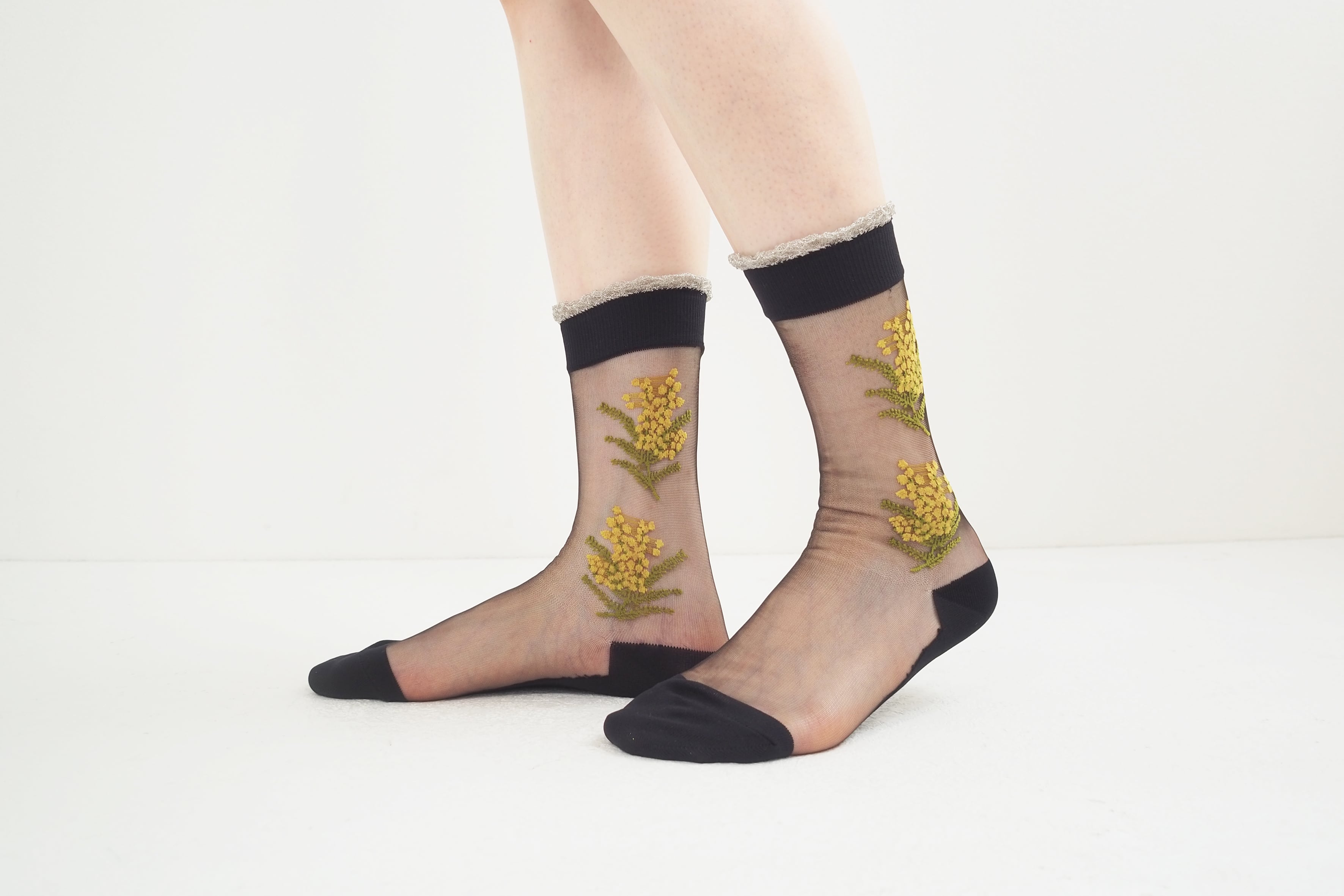 ande(アンデ)シースルーソックス クルー丈 フラワー ミモザ ブラック/21
