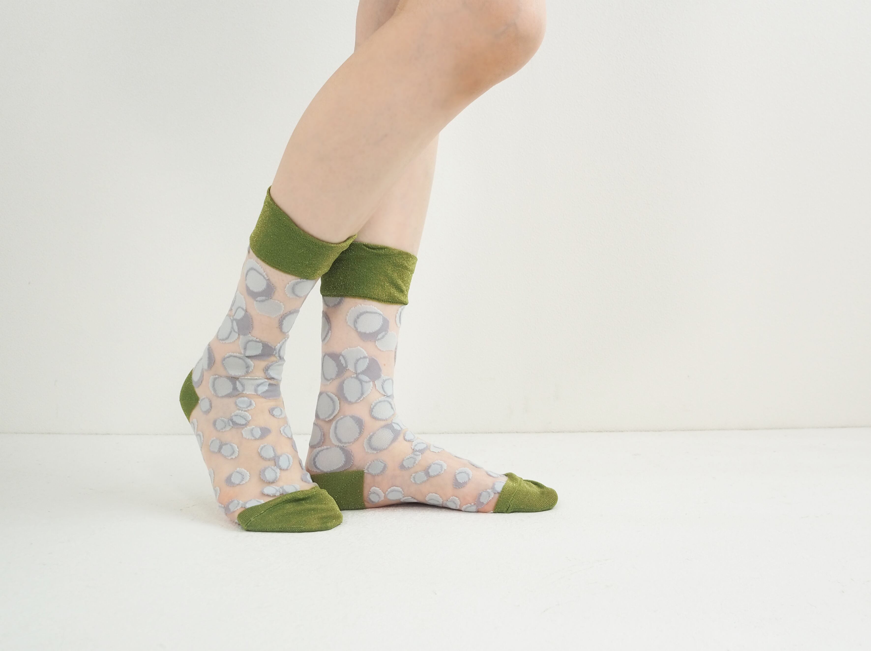 ande(アンデ)シースルーソックス クルー丈 ドット グレー/31
