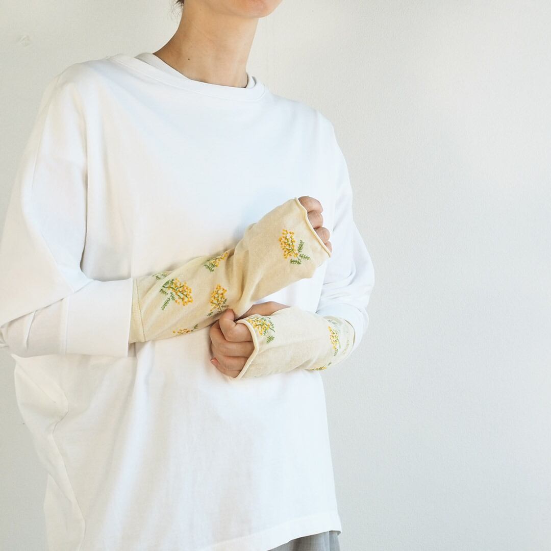 maison blanche(メゾンブランシュ)おさんぽ アームカバー ショート ミモザ クリーム/01