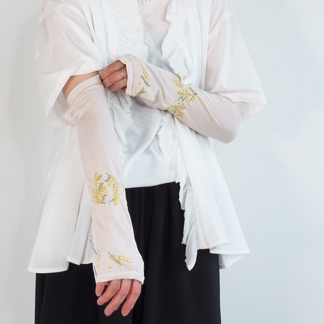 maison blanche (メゾンブランシ)おさんぽ アームカバー ミドル ミモザ クリーム/01