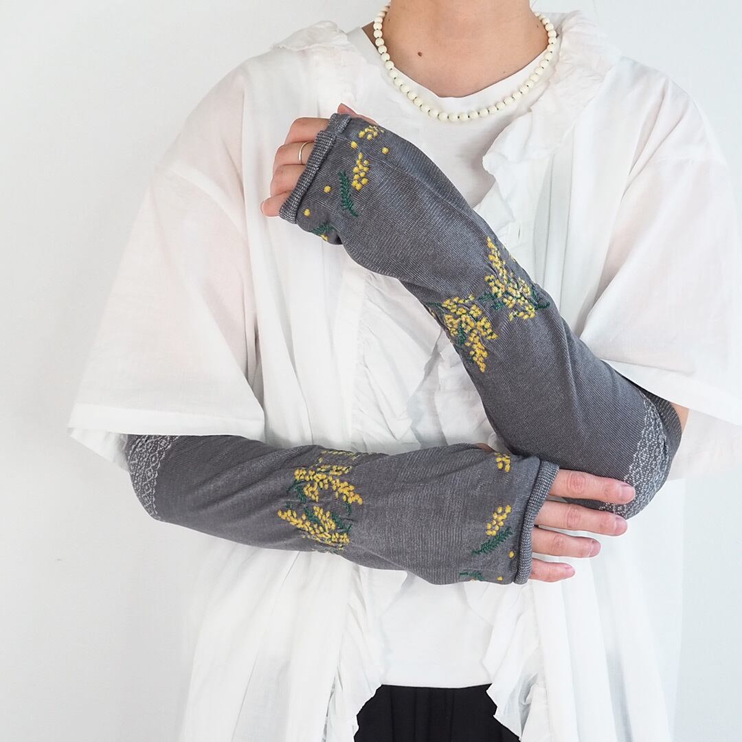 maison blanche (メゾンブランシ)おさんぽ アームカバー ミドル ミモザ ダークグレー/02