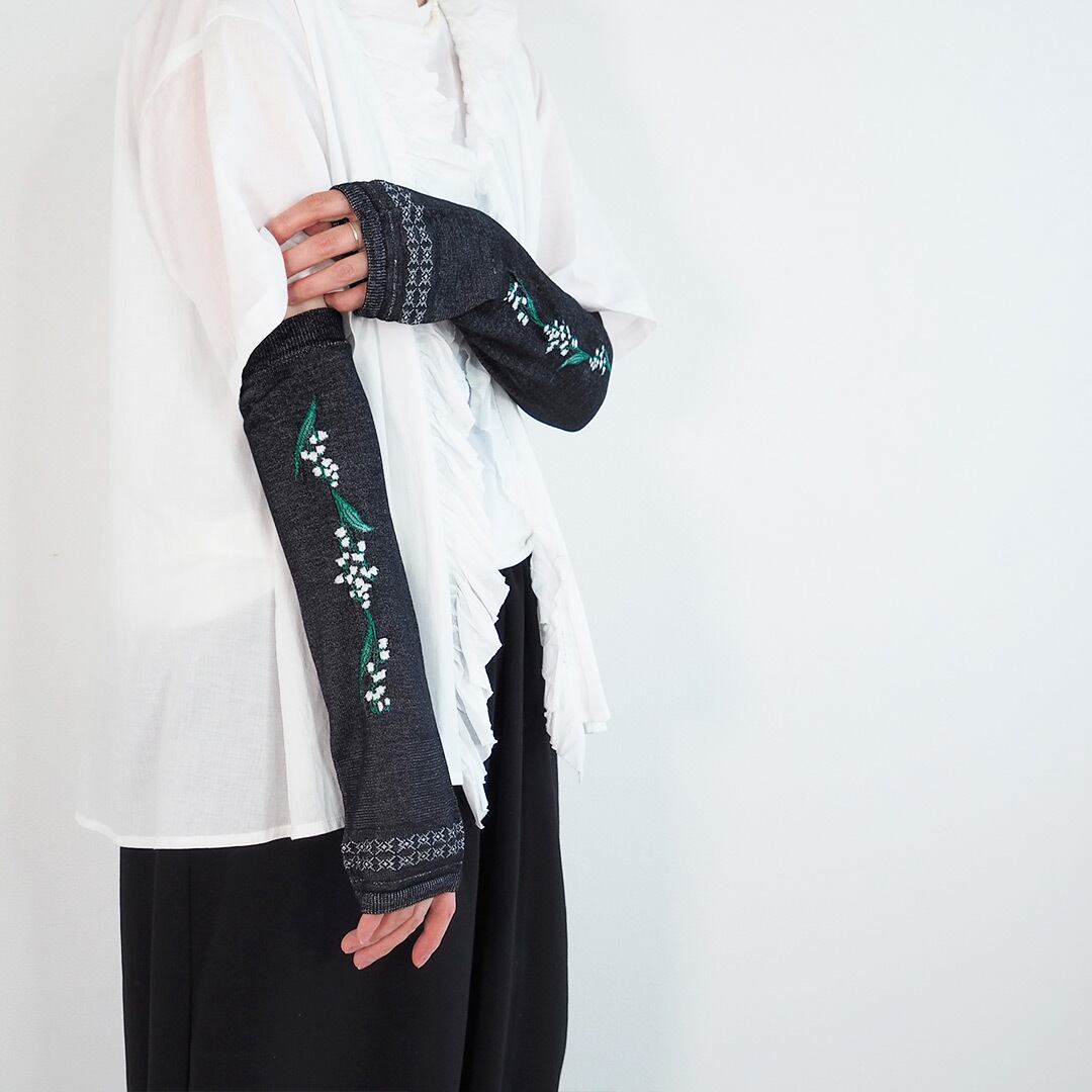 maison blanche (メゾンブランシュ)おさんぽ アームカバー ミドル スズラン ブラック/04