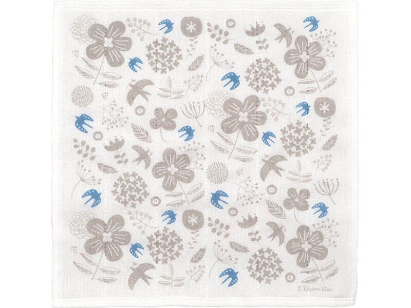 北欧風のお花と鳥のデザインがかわいいかや生地ふきん