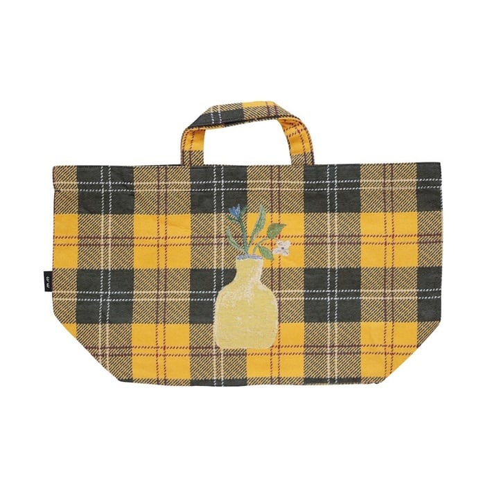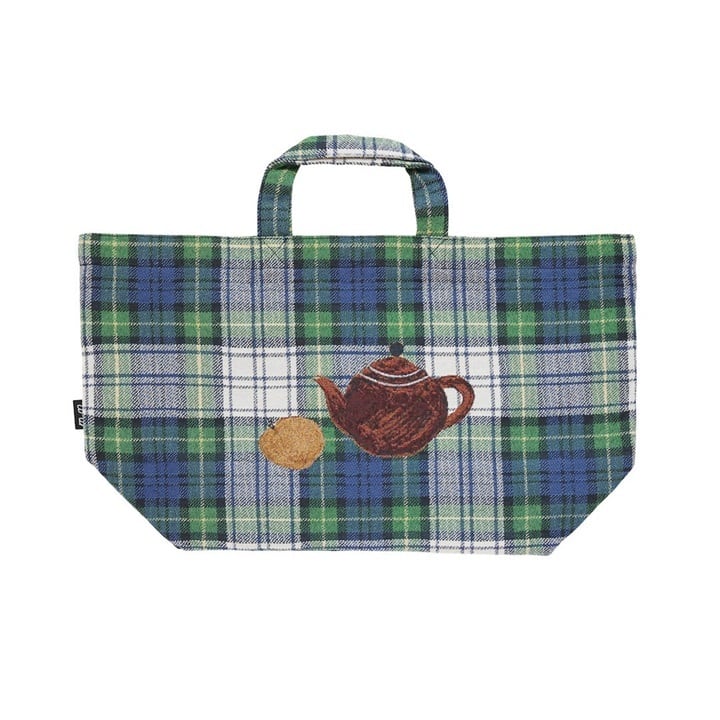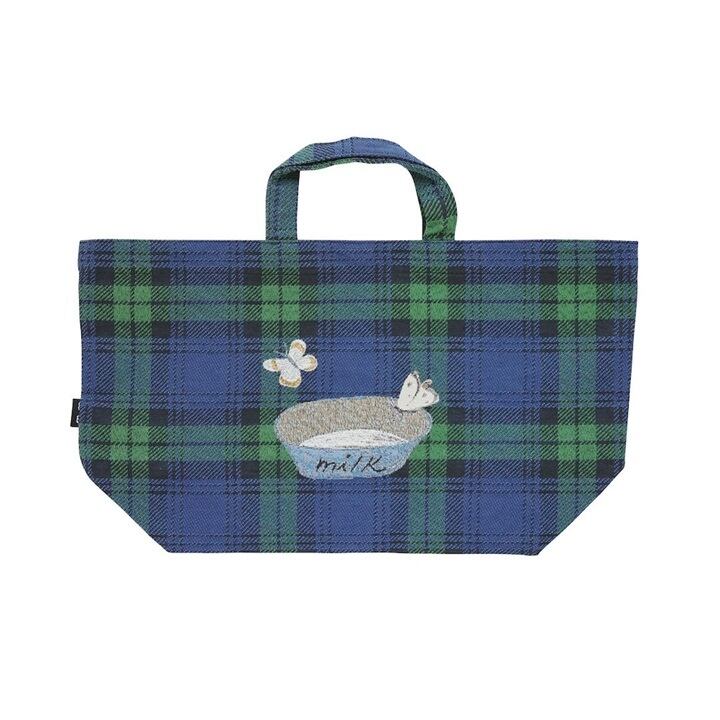 イラストだけでなく、背景のチェック柄もマッチした落ち着いた色合いのアイテム。
