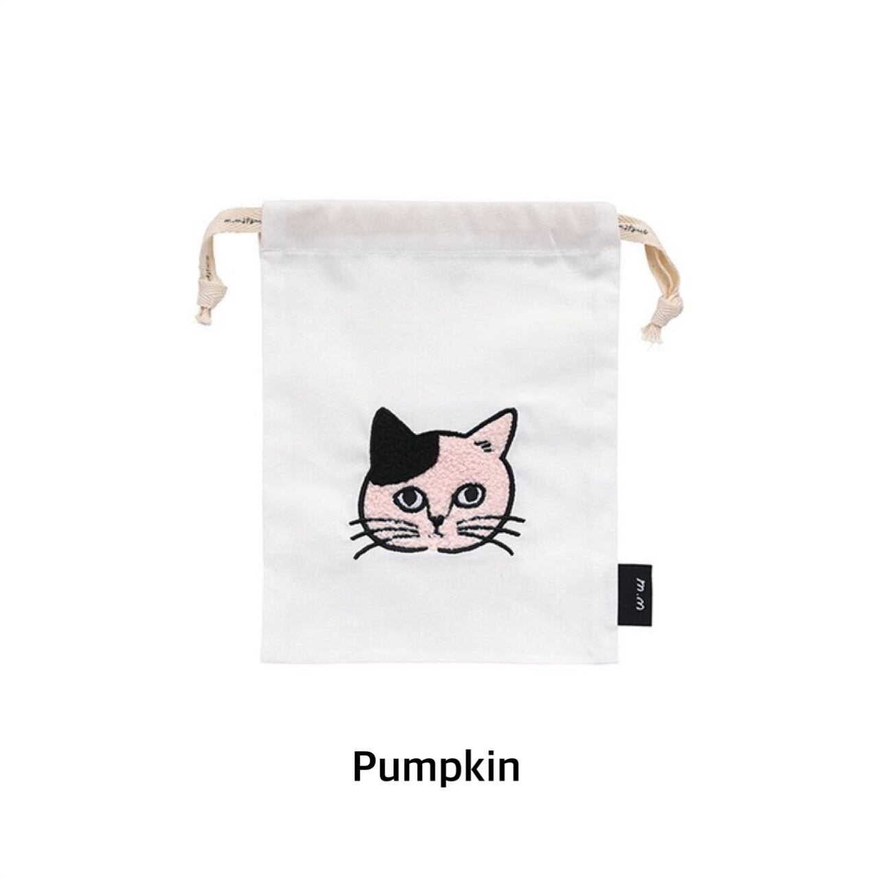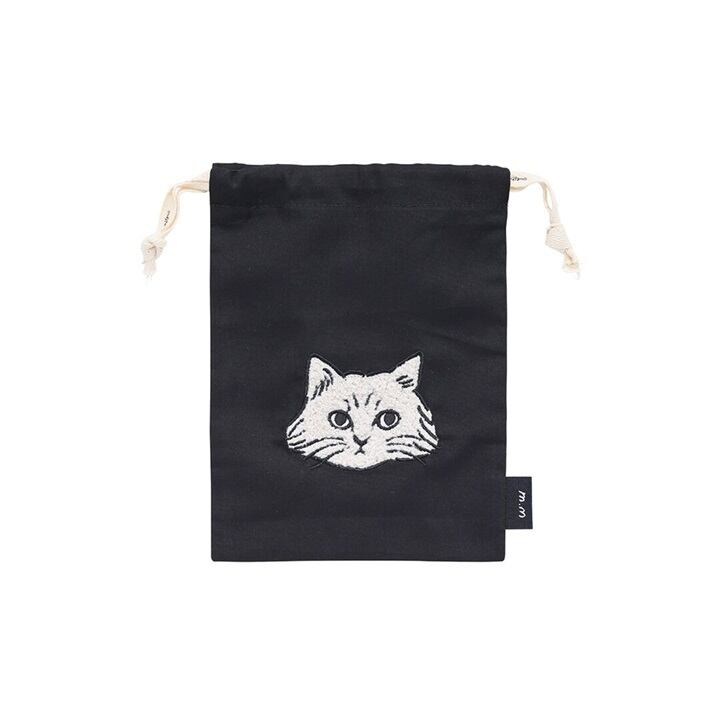 松尾ミユキさんの描く猫のお顔がとってもかわいい巾着バッグ。