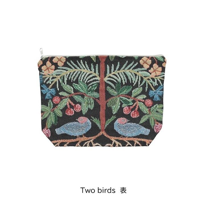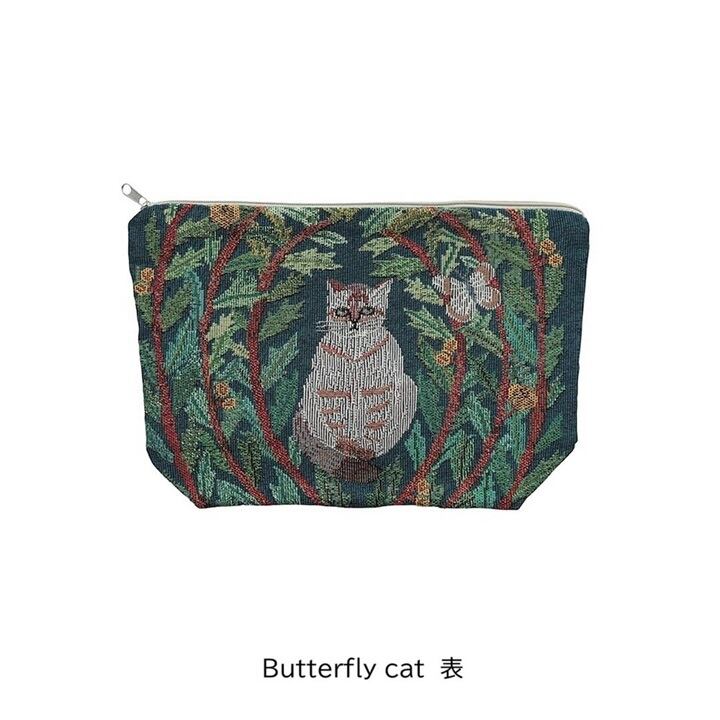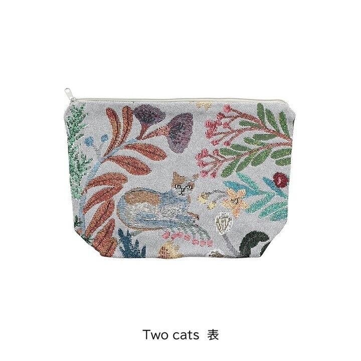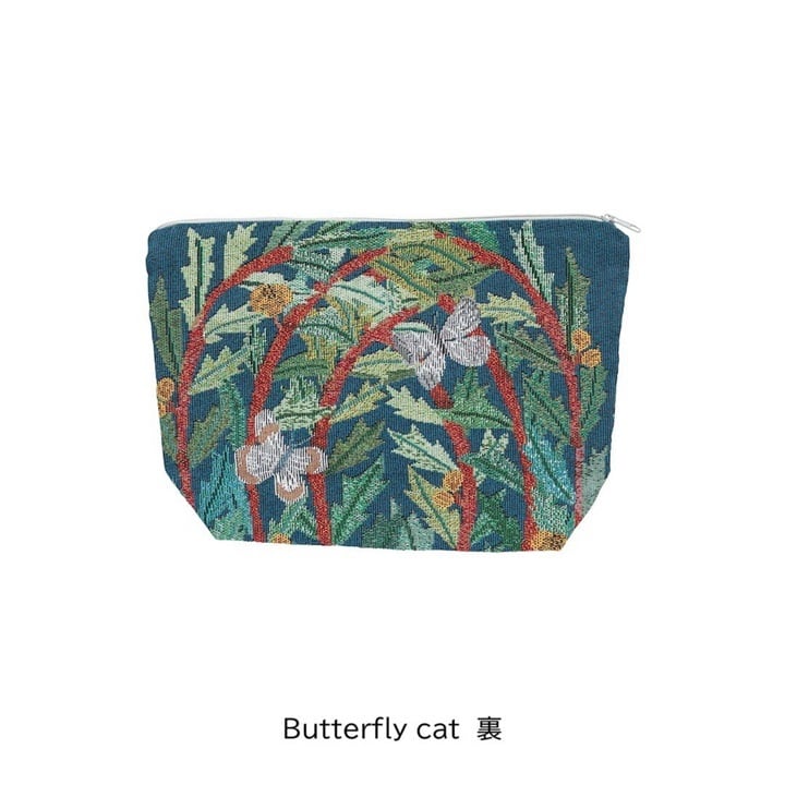 松尾ミユキさんによる、動物と植物の切り絵モチーフが広がる、ゴブラン素材のポーチです。