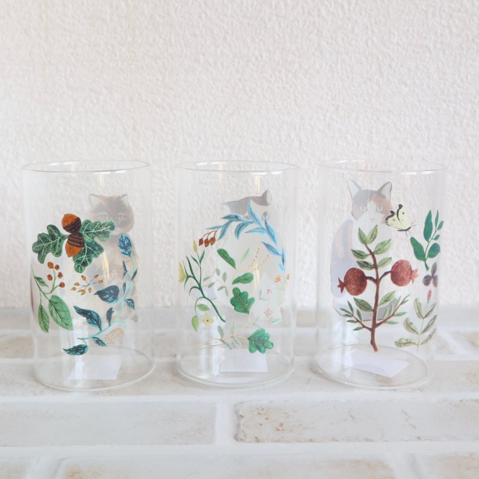 松尾ミユキさんの描くネコたちをグラスに落とし込みました。
