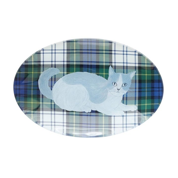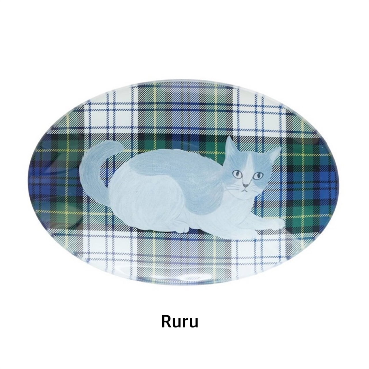 松尾ミユキさんの描くネコたちがそっとこちらを見つめる、ガラス製プレートです。
