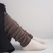 かさ高のあるウール混の糸を使用しているので、ふんわりあたたかい仕上がりになりました。丈は45cmと長めなので、伸ばしてふくらはぎ全体をあたためることも、くしゅっと縮めて足首をよりぽかぽかあたためることもできます。