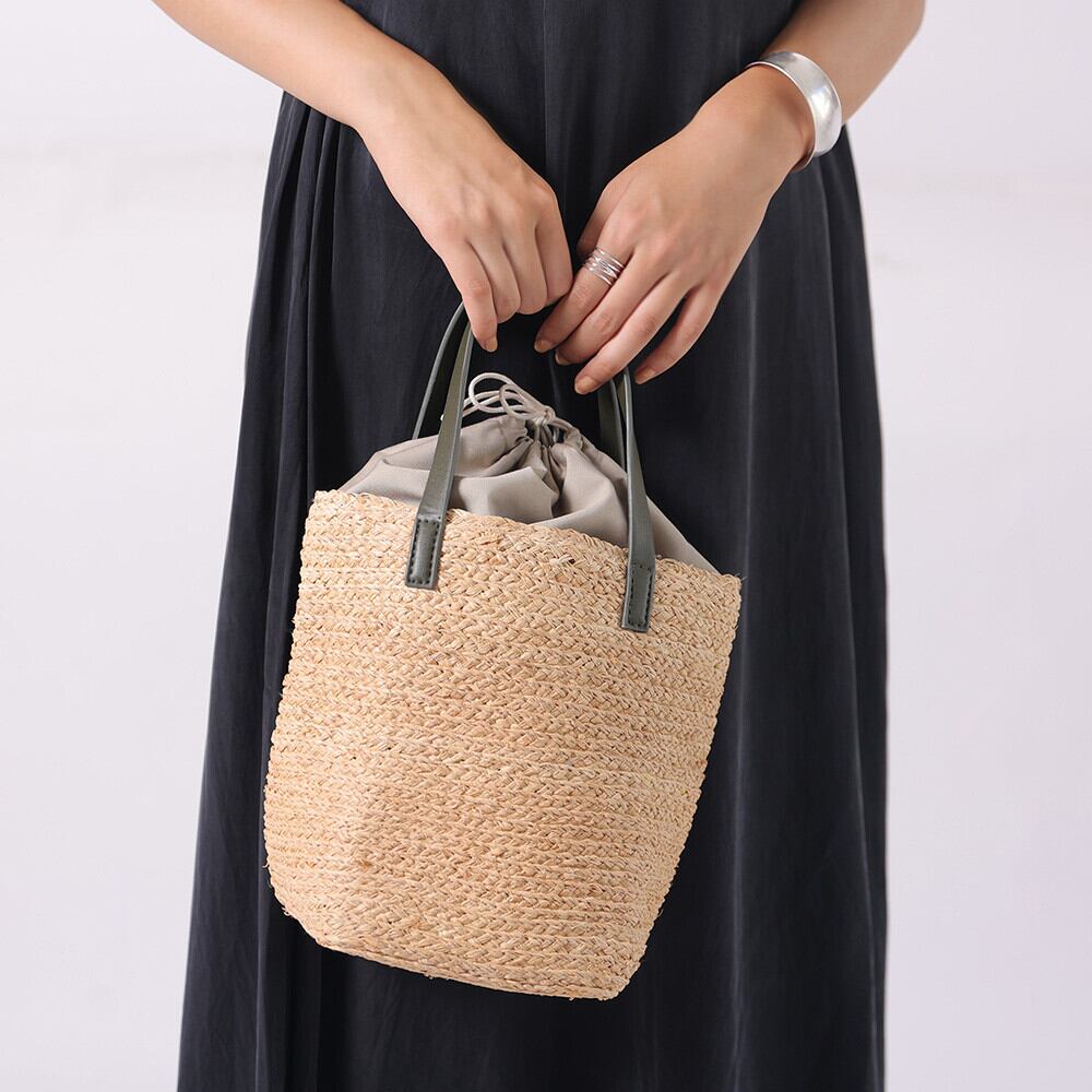 素材:本体/天然草木(ラフィア) 裏生地/ポリエステル 80% 綿 20% 持ち手/合成皮革
