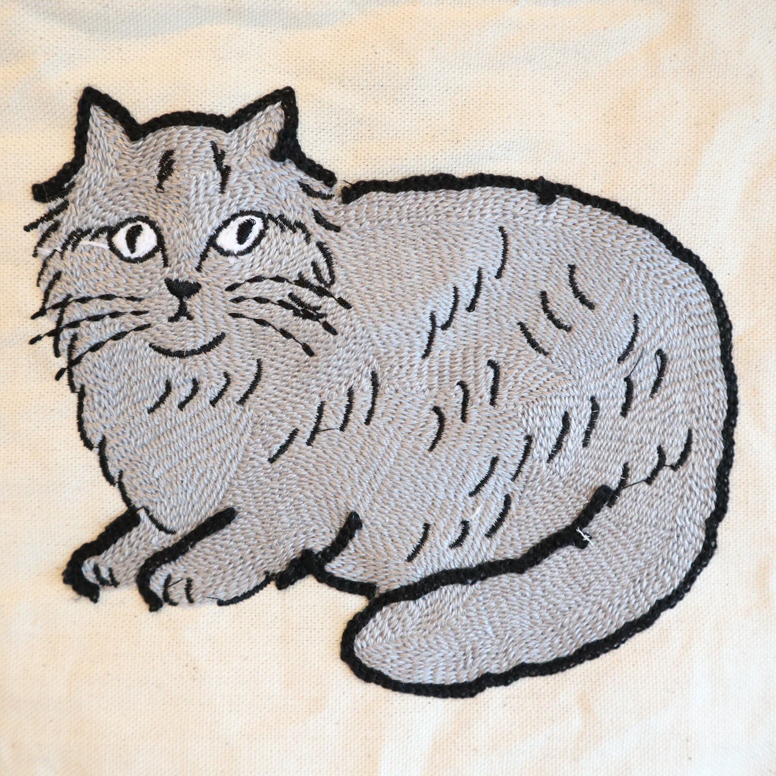 松尾ミユキさんの描く、猫たちをカラフルな刺繍で表現したトートバッグ