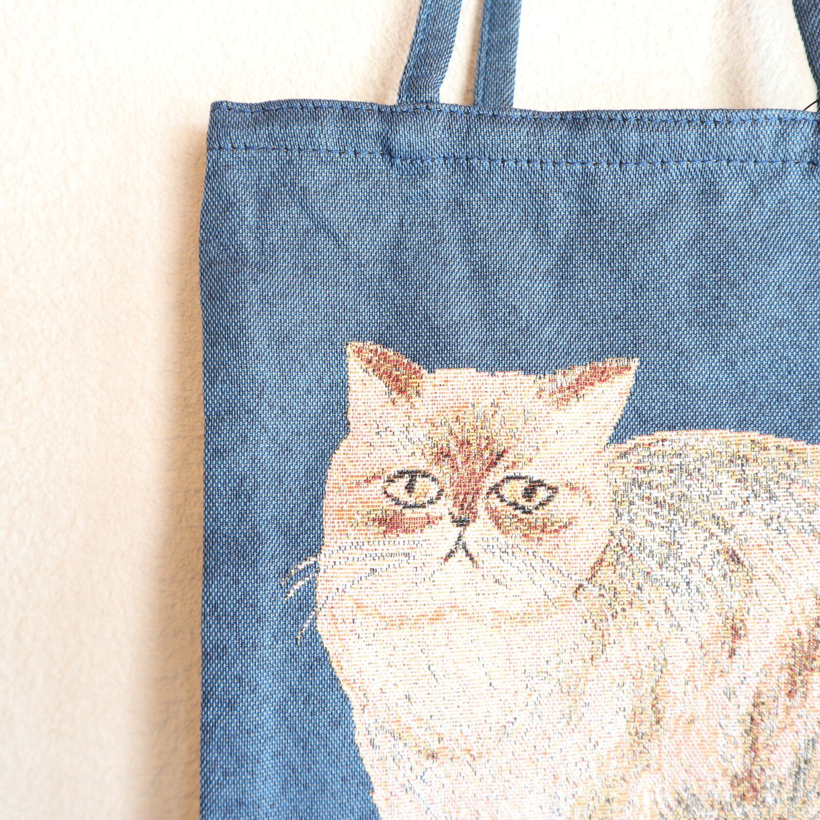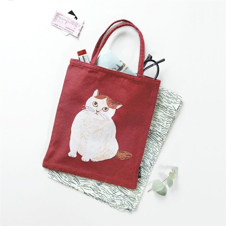 松尾ミユキさんが描くネコたちがデザインされたゴブラン織りのミニバッグです。